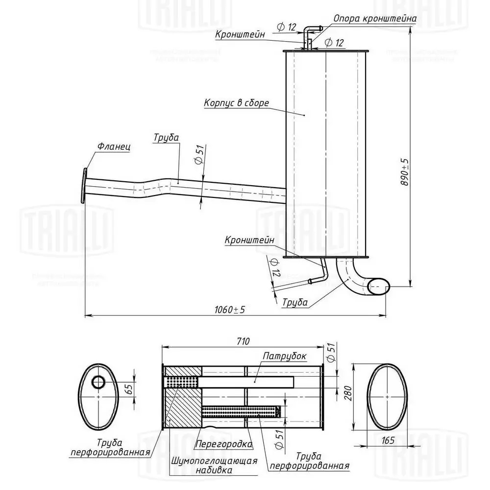 EMM 0319 TRIALLI Глушитель Hyundai ix35 (10-)/Kia Sportage III (10-) 2.0d осн. (алюм. сталь) (EMM