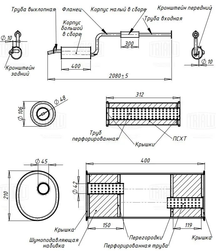 EMM0333 TRIALLI Глушитель Mazda 3 (03-) 1.3/1.6i осн. (алюм. сталь) (EMM 0333)