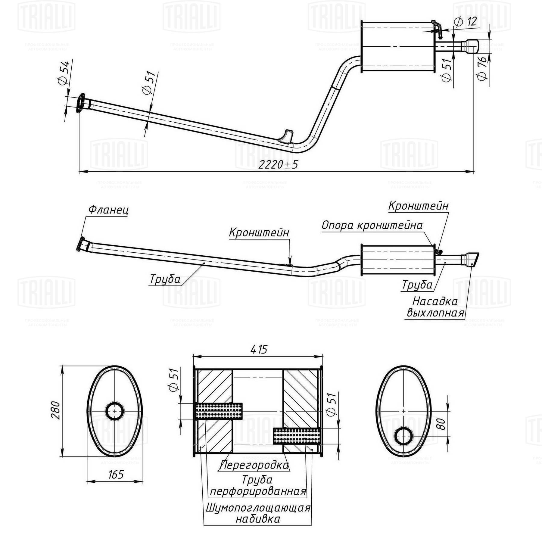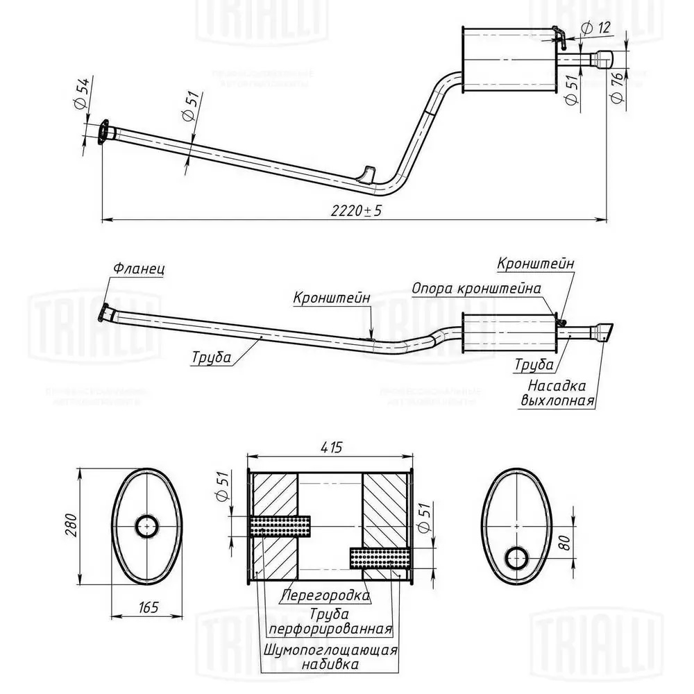 EMM0357 TRIALLI Глушитель Kia Optima (10-) 2.0i осн. (алюм. сталь) (EMM 0357)