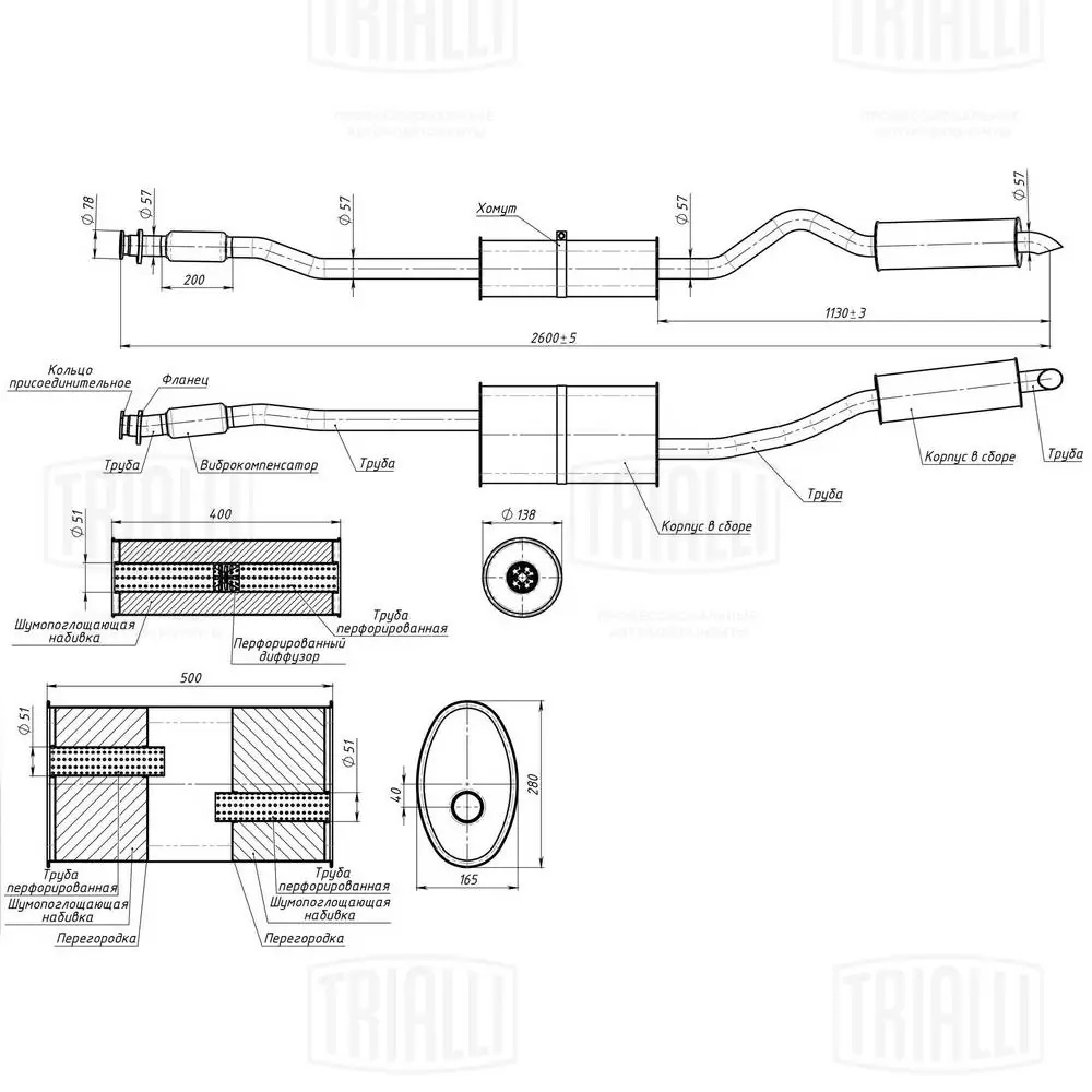 EMM 0388 TRIALLI Глушитель для а/м УАЗ 3163 дв. 409 Евро-4 в сборе (резонатор, гофра) "TRIALLI"
