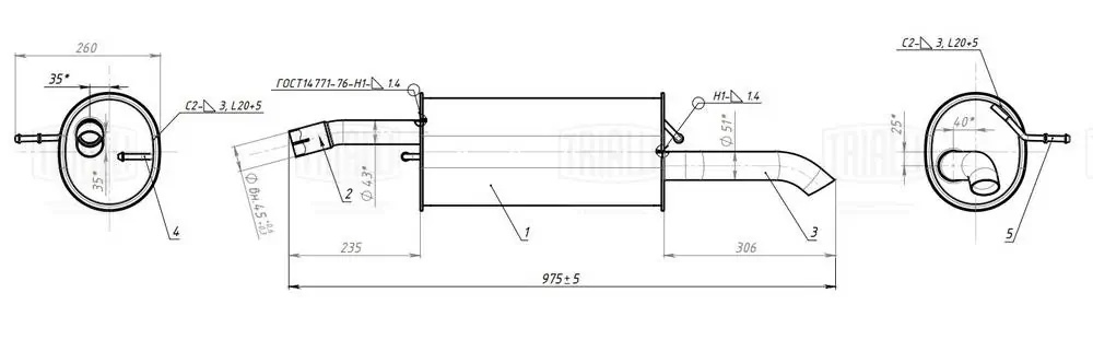 | Наименование | Глушитель FORD Fusion (05-) (1.4) задняя часть TRIALLI |