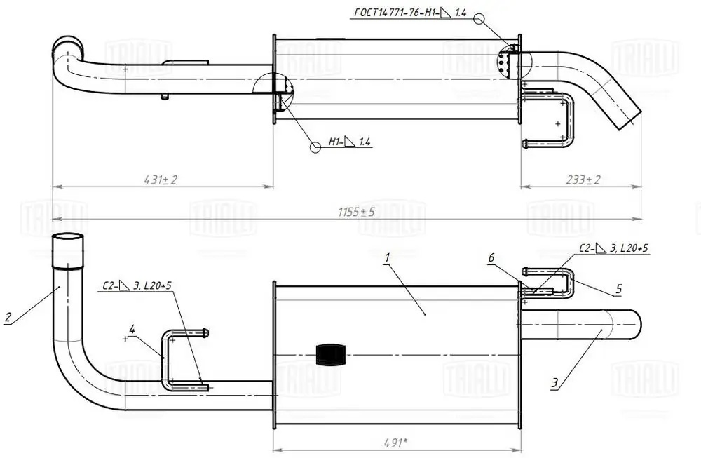 EMM1120 TRIALLI Глушитель Nissan Pathfinder (05-) 2.5d осн. (алюм. сталь) (EMM 1120)