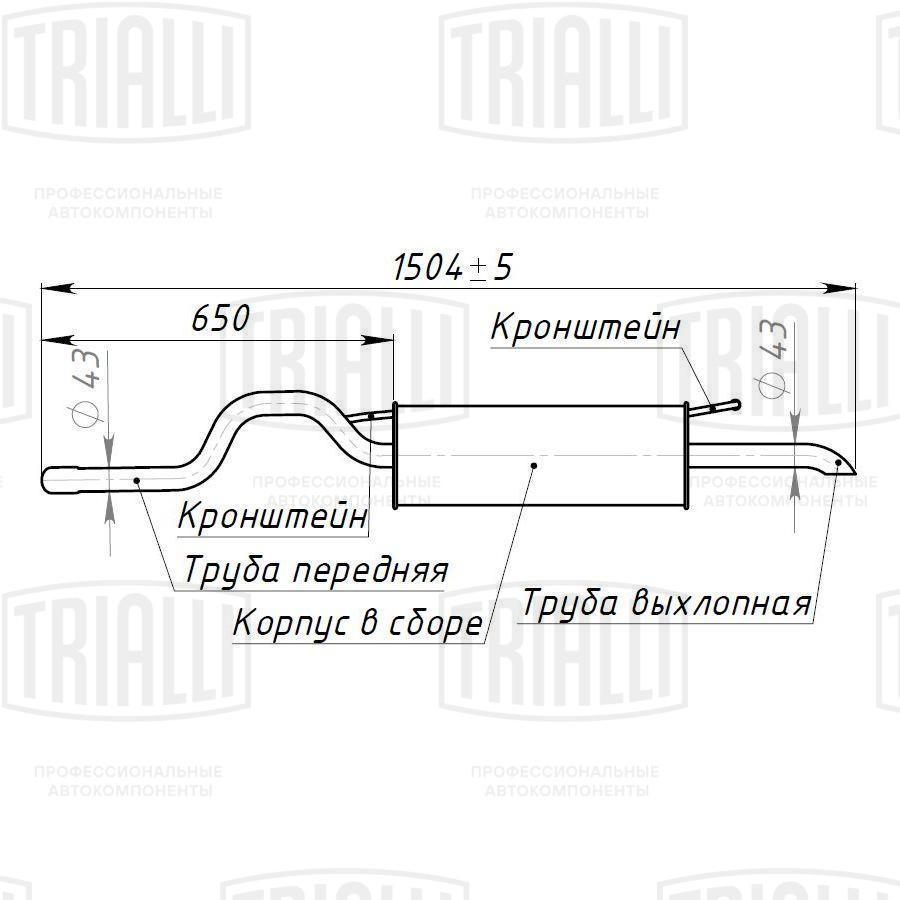 EMM 1810 TRIALLI Глушитель Skoda Octavia (96-) 1.4i/1.6i 8V осн. (алюм. сталь) (EMM 1810)