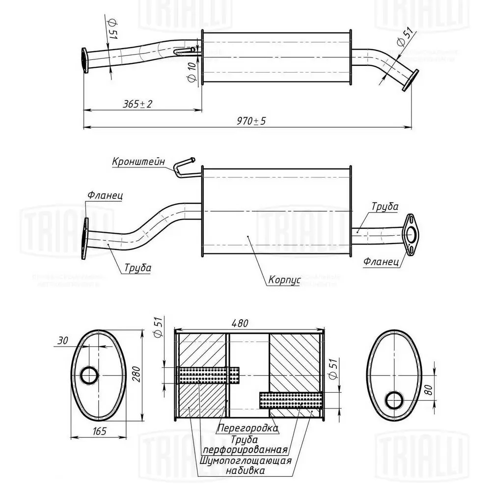 EMM 2704 TRIALLI Глушитель Great Wall Hover H3/H5 (07-) 2.0i/2.4i Евро-3 осн. с крючком (алюм. ст