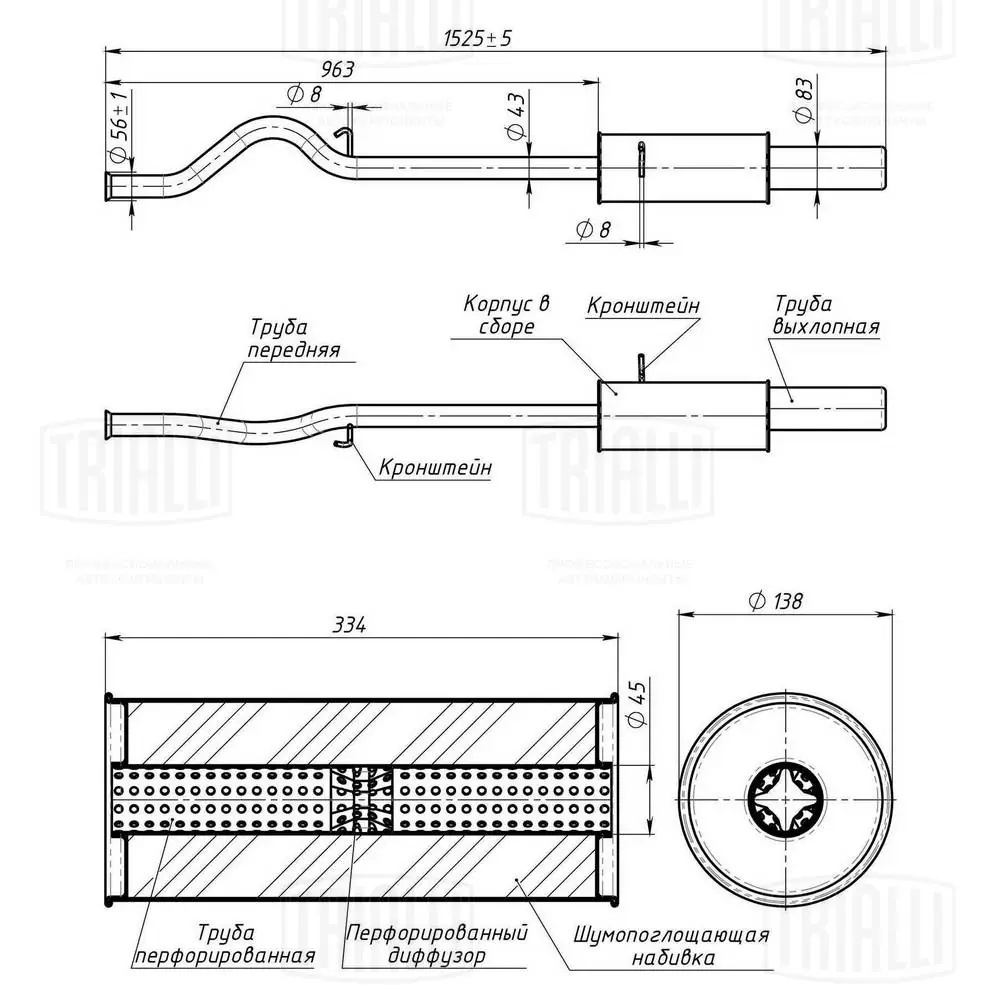 | Наименование | Глушитель для а/м ВАЗ 2110 "TRIALLI" (алюминизированная сталь) T-Sport |