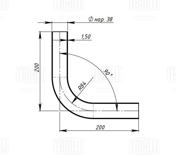 EMP 38A90 TRIALLI Труба с гибом d=38, угол 90 (алюм. сталь) (EMP 38A90)