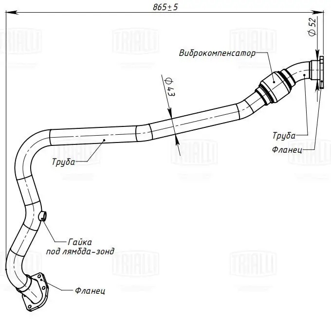 ERP 0114 TRIALLI Труба приёмная Лада 21074 Евро-3 с гофрой (алюм. сталь) (ERP 0114)