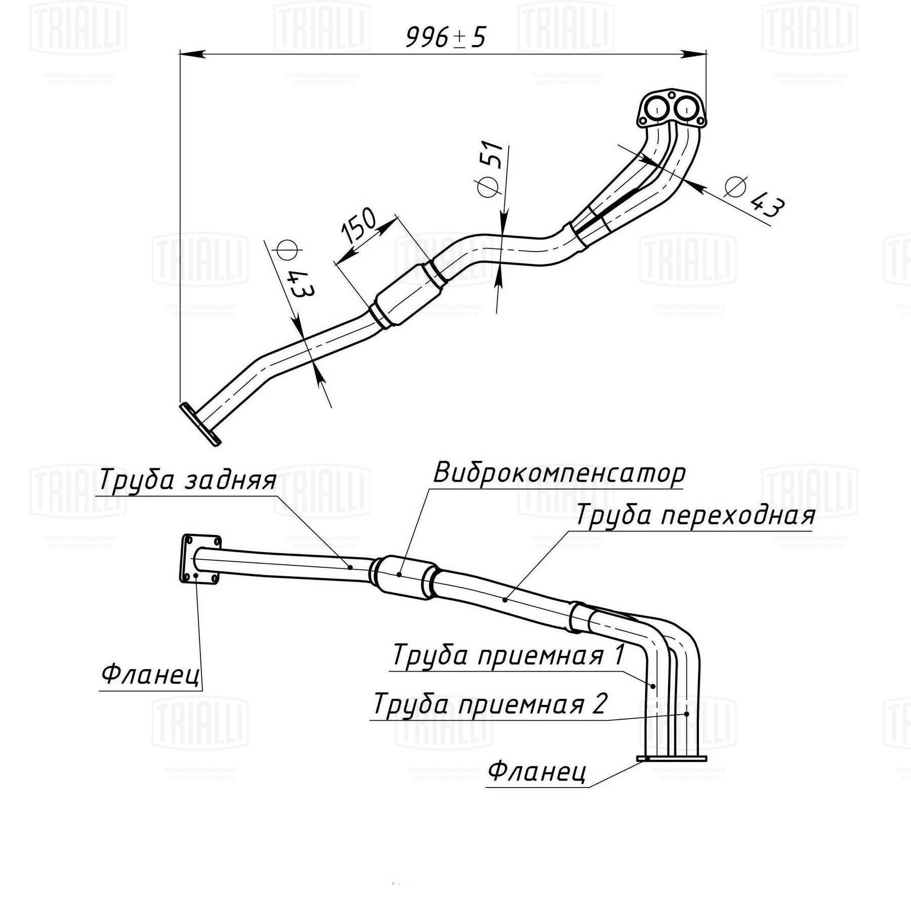ERP 0502 TRIALLI Труба приёмная Daewoo Nexia (95-) 16V дв. A15MF (алюм. сталь) (ERP 0502)