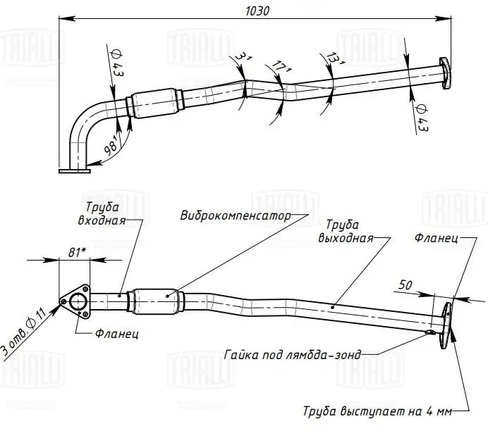 | Наименование | Труба приемная глушителя DAEWOO Matiz (98-) (с катализатором) TRIALLI |