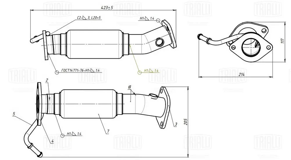ERP 0520 TRIALLI Труба приёмная для а/м Kia Cerato 13- 1.6i/2.0i с гофрой алюм. сталь ERP 0520