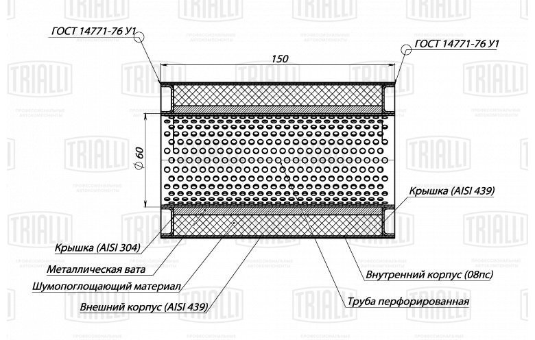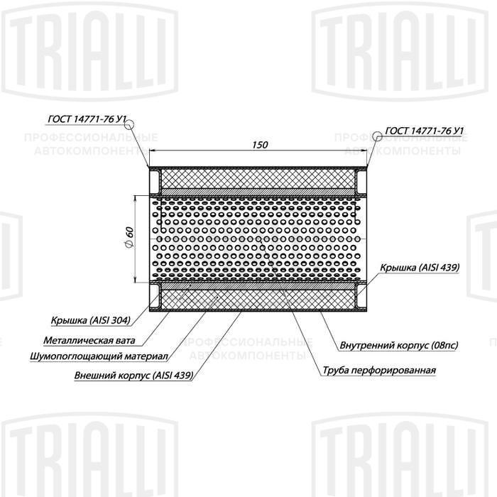 ESM 10015060P TRIALLI Пламегаситель универс. 100/150-60 (нерж. сталь) (ESM 10015060p)
