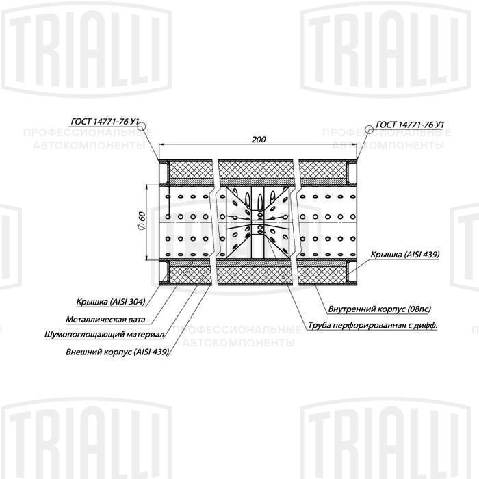 ESM 10020060D TRIALLI Пламегаситель универс. 100/200-60 с перф. диффузором (нерж. сталь) (ESM 10020060