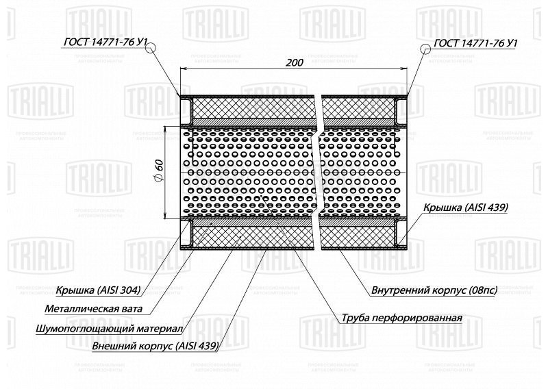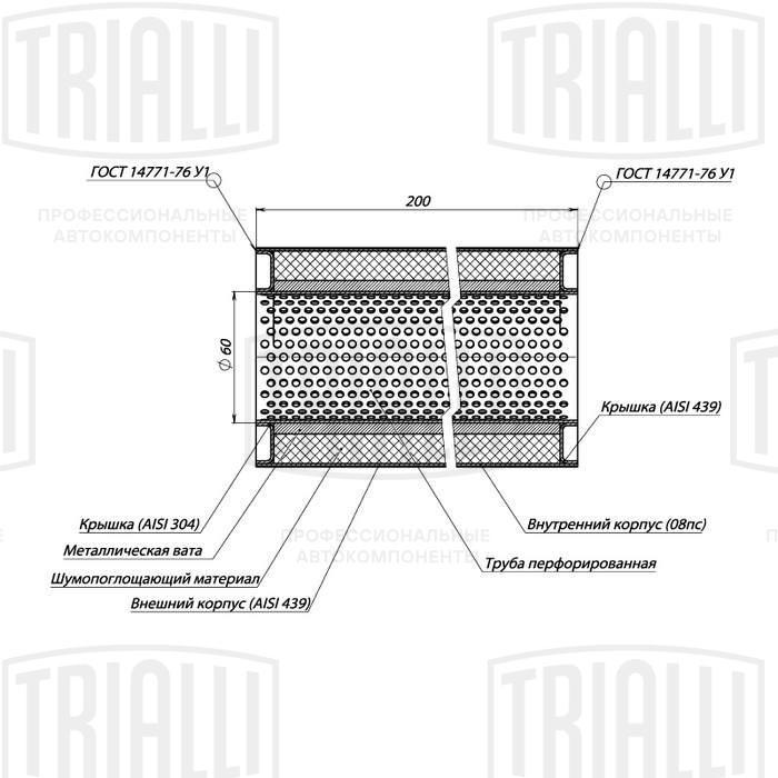 ESM 10020060P TRIALLI Пламегаситель универс. 100/200-60 (нерж. сталь) (ESM 10020060p)