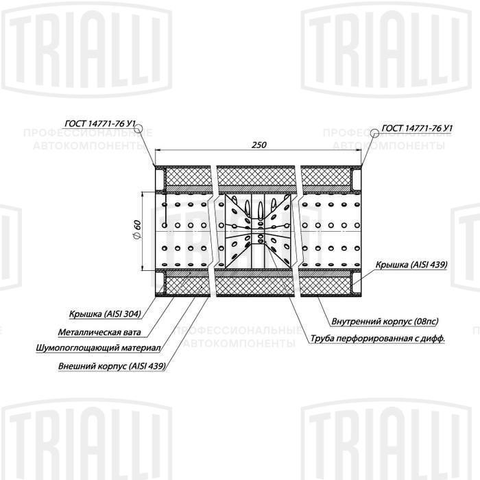 ESM 10025060D TRIALLI Пламегаситель универс. 100/250-60 с перф. диффузором (нерж. сталь) (ESM 10025060