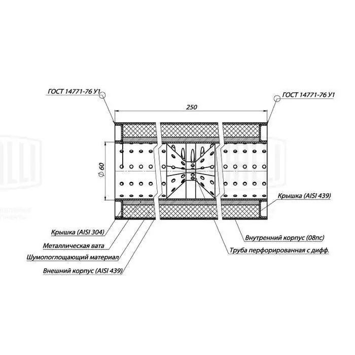 | Наименование | Пламегаситель универс. 100/250-60 с перф. диффузором (нерж. сталь) (ESM 10025060 |