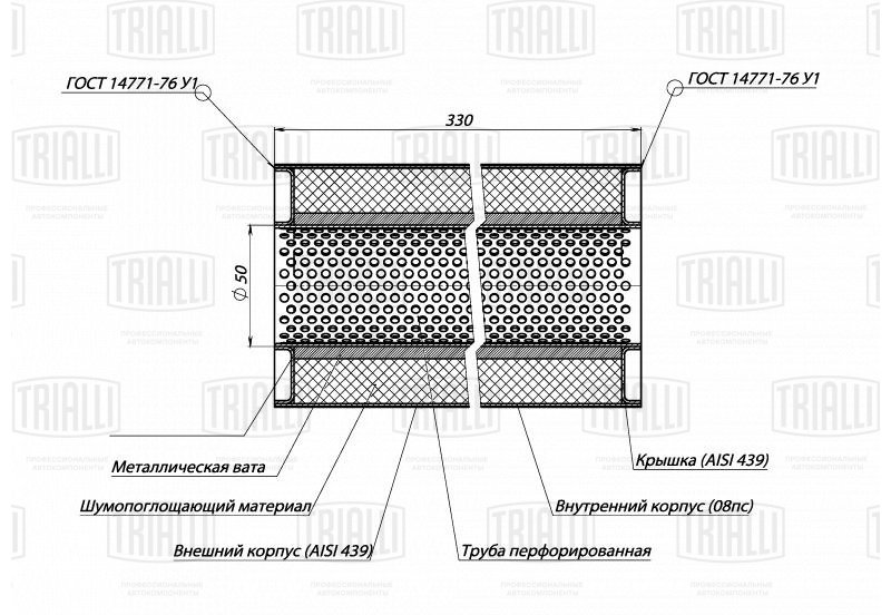 ESM 10033050P TRIALLI Пламегаситель универс. 100/330-50 (нерж. сталь) (ESM 10033050p)