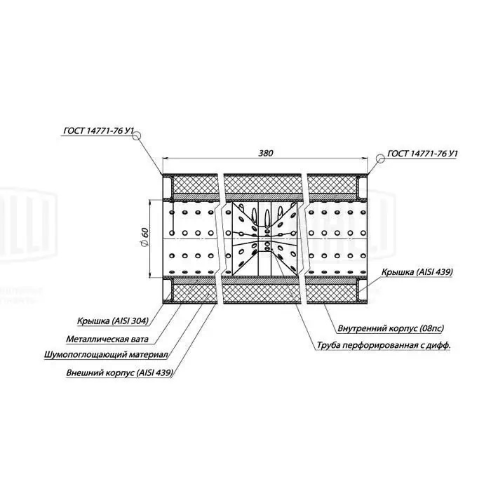 | Наименование | Пламегаситель универс. 100/380-60 с перф. диффузором (нерж. сталь) (ESM 10038060 |