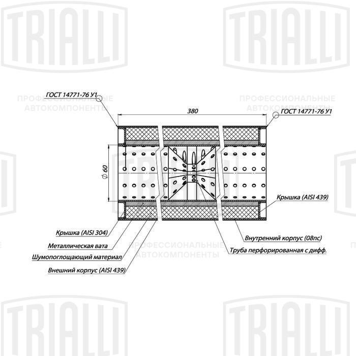 ESM 10038060D TRIALLI Пламегаситель универс. 100/380-60 с перф. диффузором (нерж. сталь) (ESM 10038060