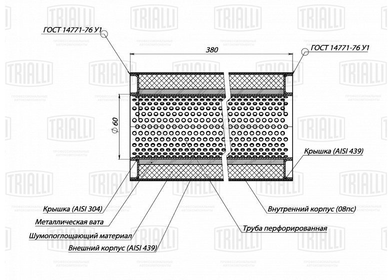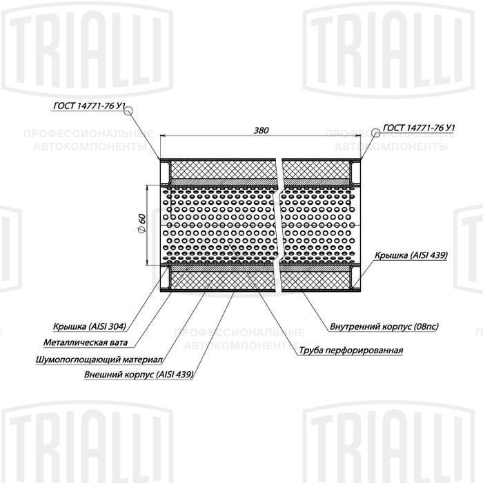 ESM 10038060P TRIALLI Пламегаситель универс. 100/380-60 (нерж. сталь) (ESM 10038060p)
