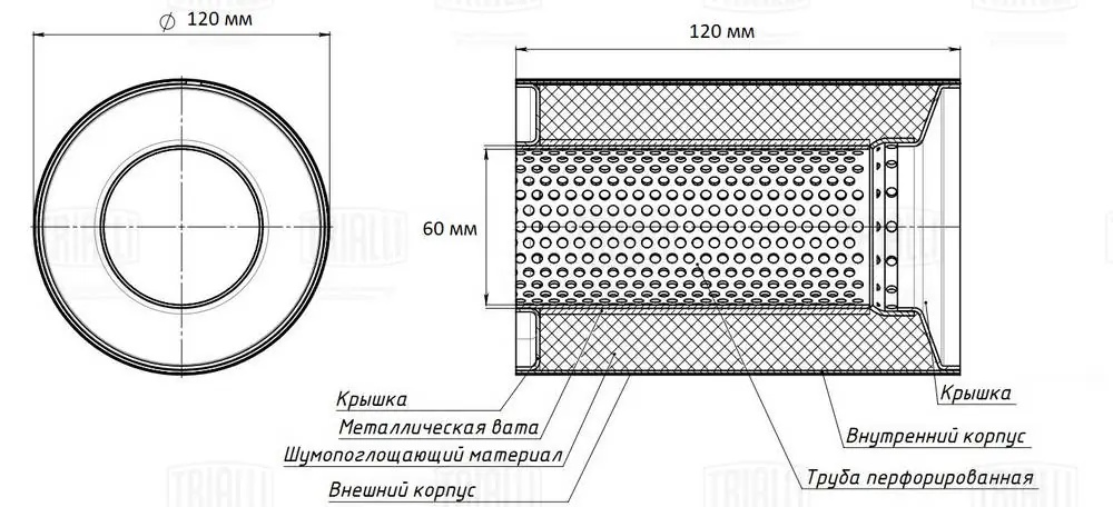 ESM 12012060 k TRIALLI Пламегаситель коллекторный 120/120-60 (нерж. сталь) (ESM 12012060 k)