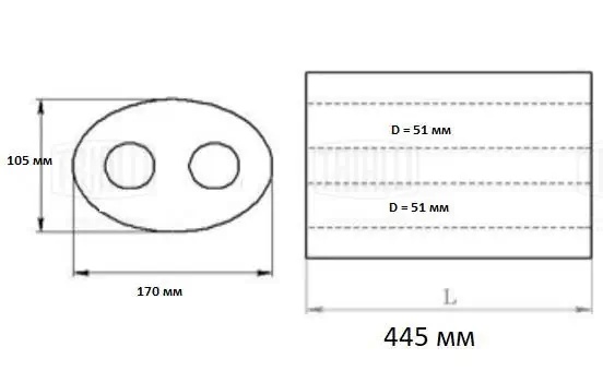 ESM 17144551 d TRIALLI Пламегаситель универс. 170-105/L 445 две по 54 с перф. диффуз. (нерж. сталь)(ESM
