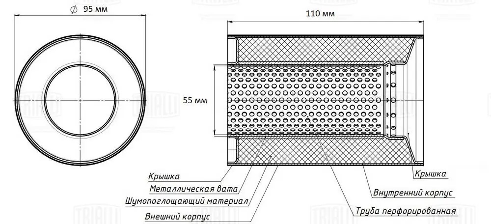 ESM 9511055 k TRIALLI Пламегаситель коллекторный 95/110-55 (нерж. сталь) (ESM 9511055 k)
