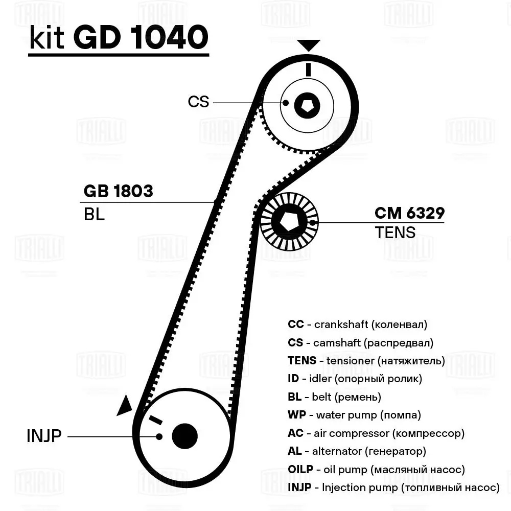 GB 1803 TRIALLI Ремень ГРМ Ford Ranger (98-) 2.5d (101*30) (HNBR стекловолокно) (GB 1803)