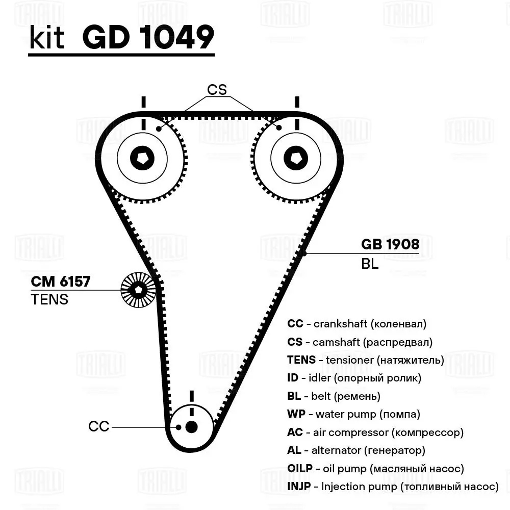 GB 1908 TRIALLI Ремень ГРМ Lexus RX (98-) 3.0i/3.3i (143*25) (HNBR стекловолокно) (GB 1908)