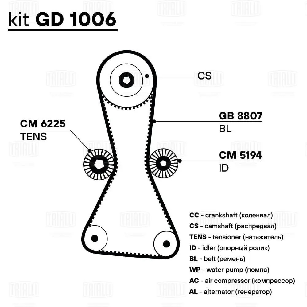 GB8807 TRIALLI Ремень ГРМ Great Wall Hover H5 (11-) 2.0d (171*25) (HNBR стекловолок.) (GB 8807)