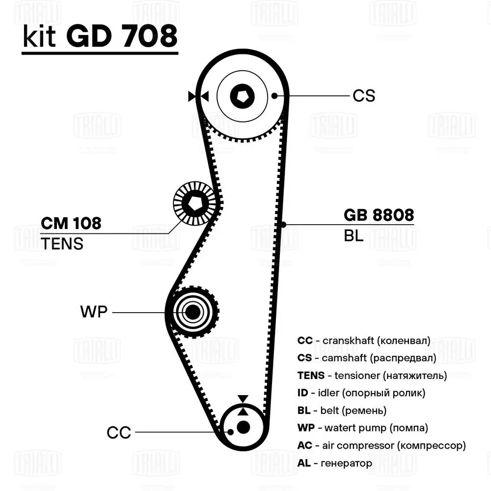 GB8808 TRIALLI Ремень ГРМ ВАЗ 2108 GB8808