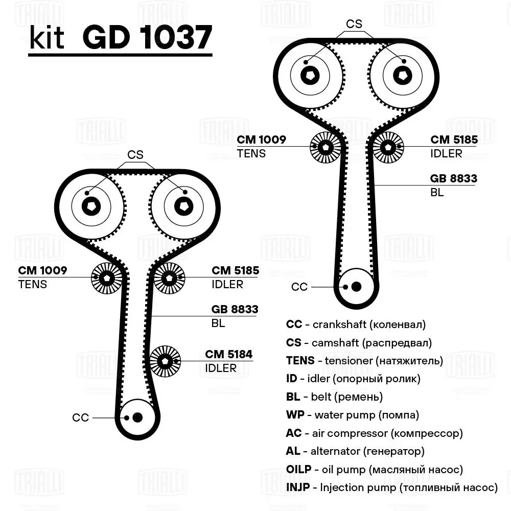 GB 8833 TRIALLI Ремень ГРМ Ford Focus I (98-) 1.8i/2.0i (129*25.4) (HNBR стекловолокно) (GB 8833