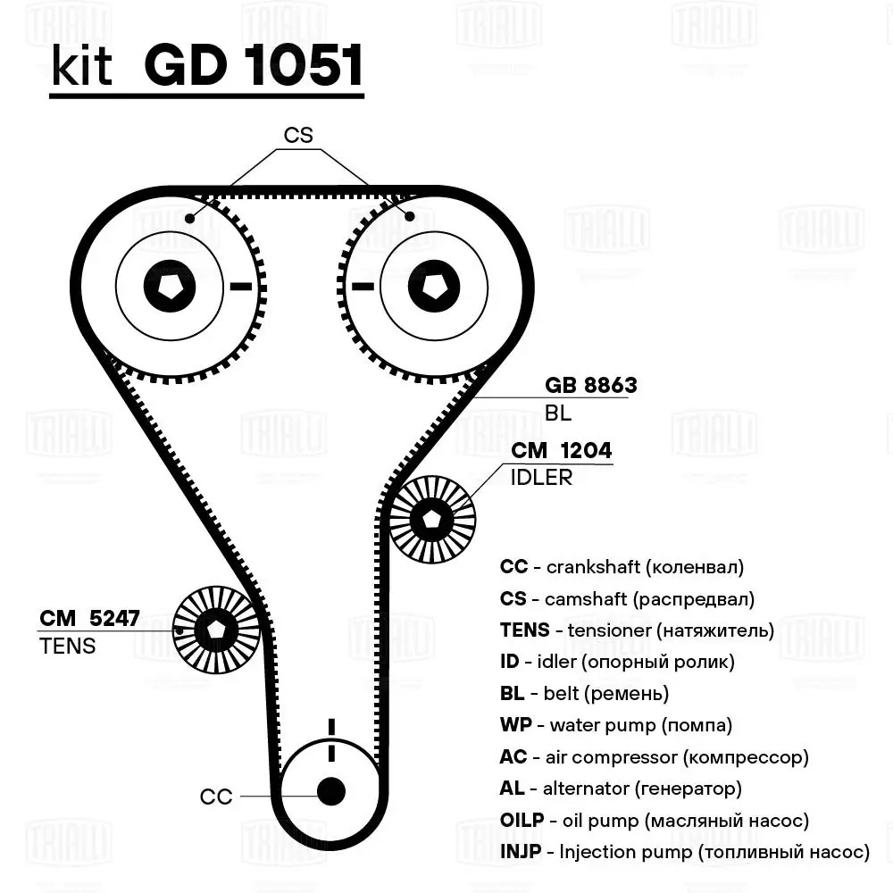 GB 8863 TRIALLI Ремень ГРМ Mazda 626 (87-) 2.0i (135*25) (HNBR стекловолокно) (GB 8863)