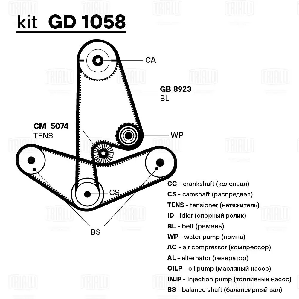 GB 8923 TRIALLI Ремень ГРМ Honda Accord (90-) 2.0i/2.2i (70*16) (HNBR стекловолокно) (GB 8923)