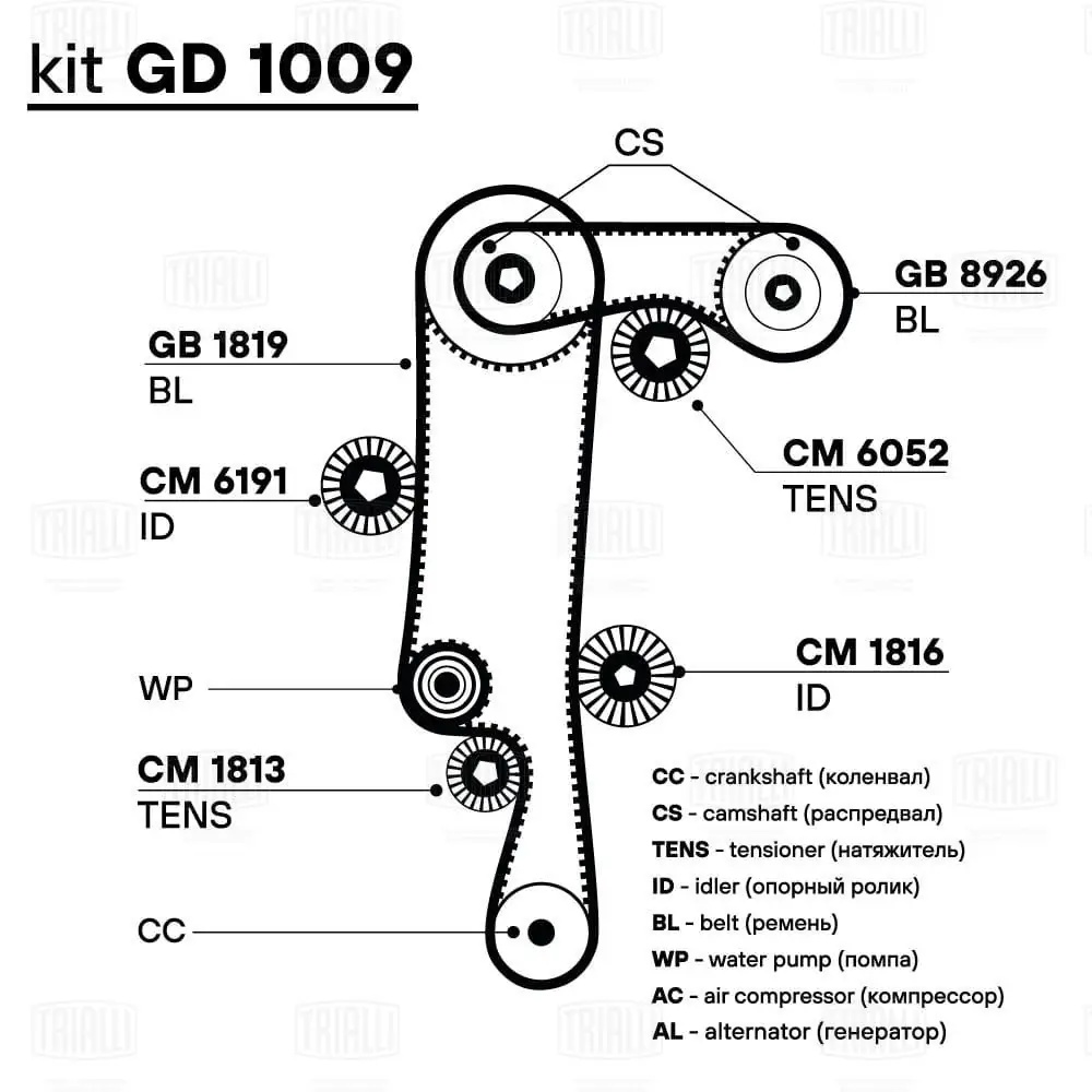 GB8926 TRIALLI Ремень ГРМ Skoda Fabia (97-)/VW Polo (99-) 1.4i/1.6i (58*17) (HNBR стекловолок.)