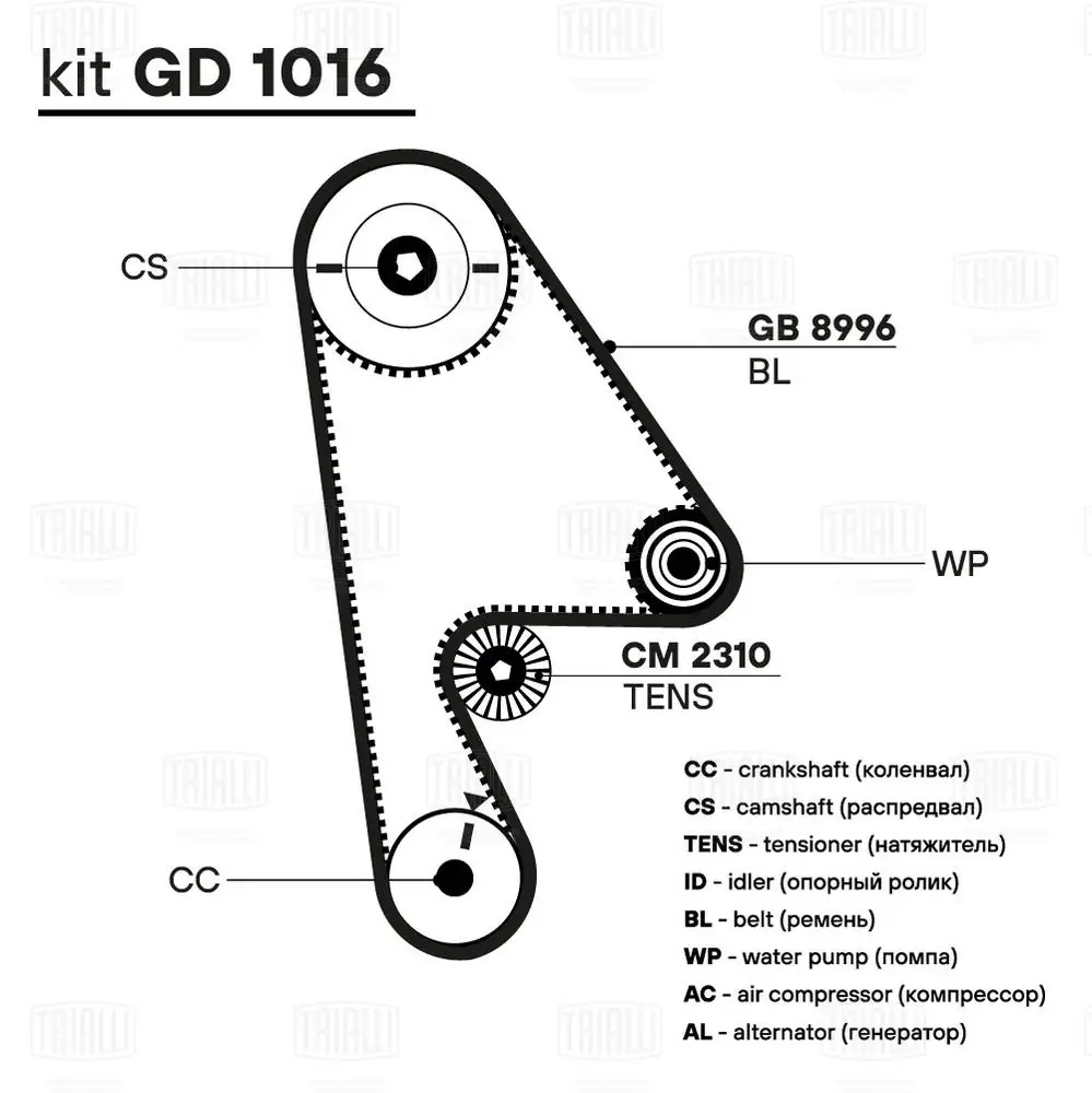 GB 8996 TRIALLI Ремень ГРМ Honda HR-V (98-) 1.6i (104*24) (HNBR стекловолок.) (GB 8996)