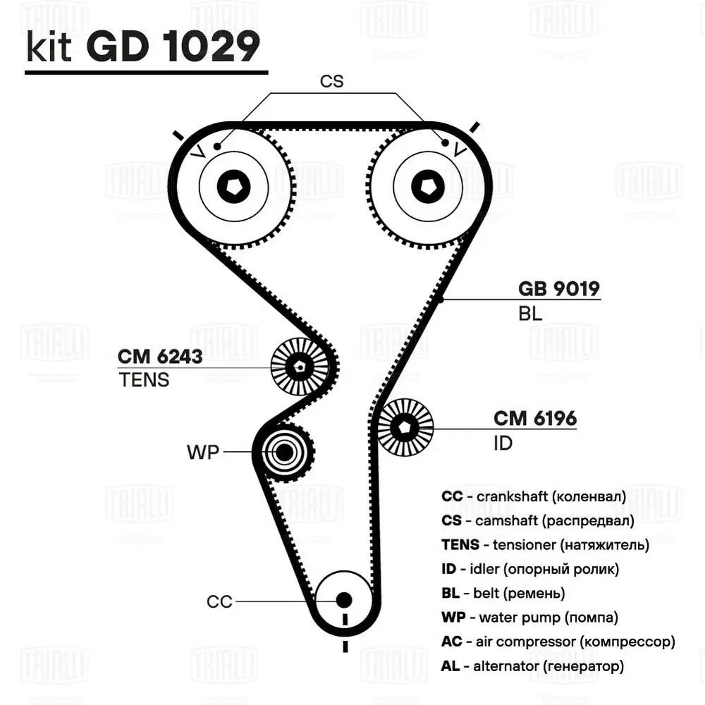 GB 9019 TRIALLI Ремень ГРМ Peugeot 307 (00-) 1.6i (134*25.4) (HNBR стекловолок.) (GB 9019)