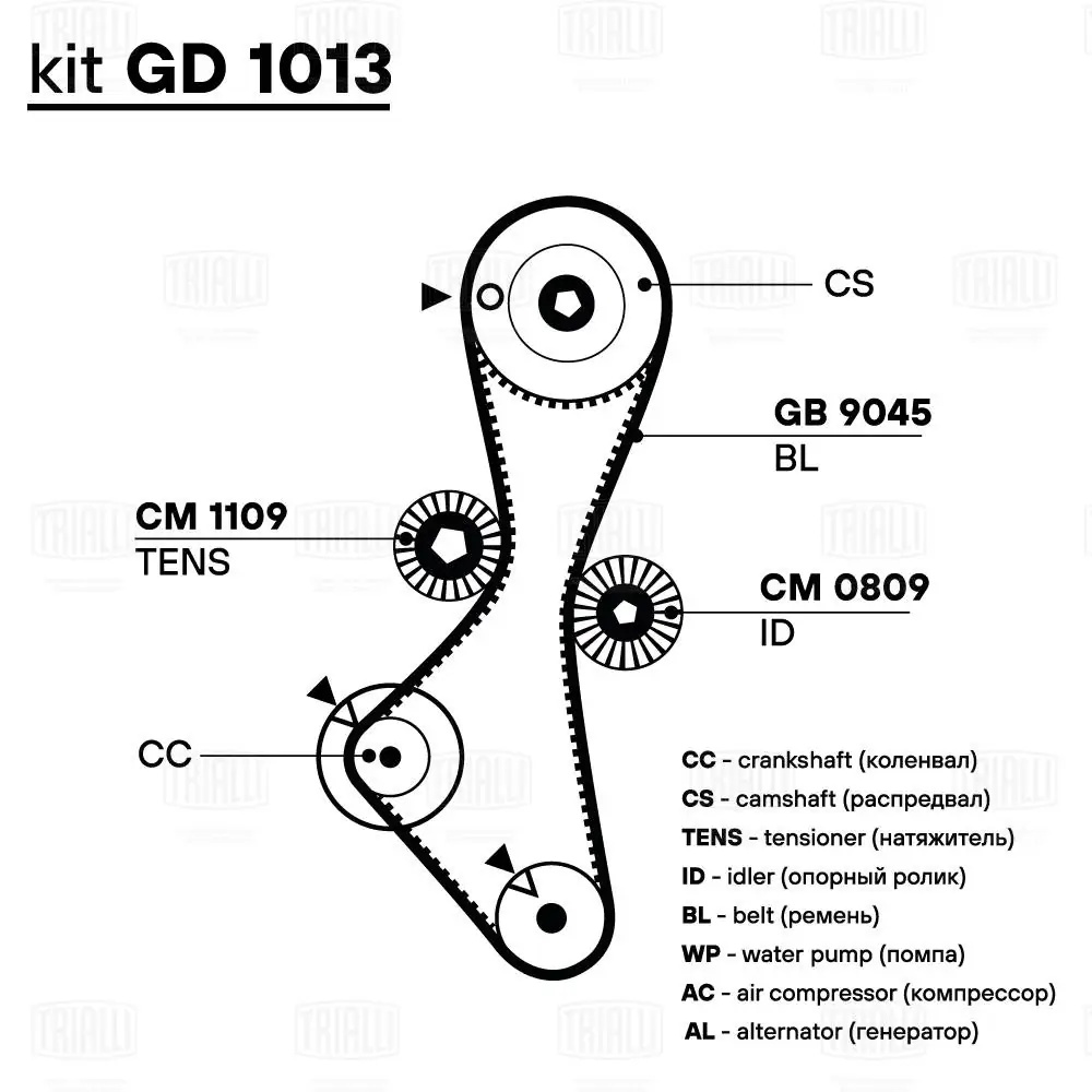 GB9045 TRIALLI Ремень ГРМ (HNBR стекловолокно)