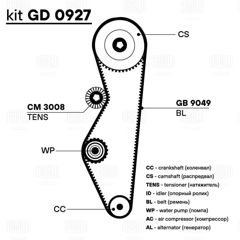 GD 0927 TRIALLI Ремкомплект ГРМ для а/м Chery Bonus (A21) (06-) 1.5i (ремень HNBR/1 ролик) (GD 0