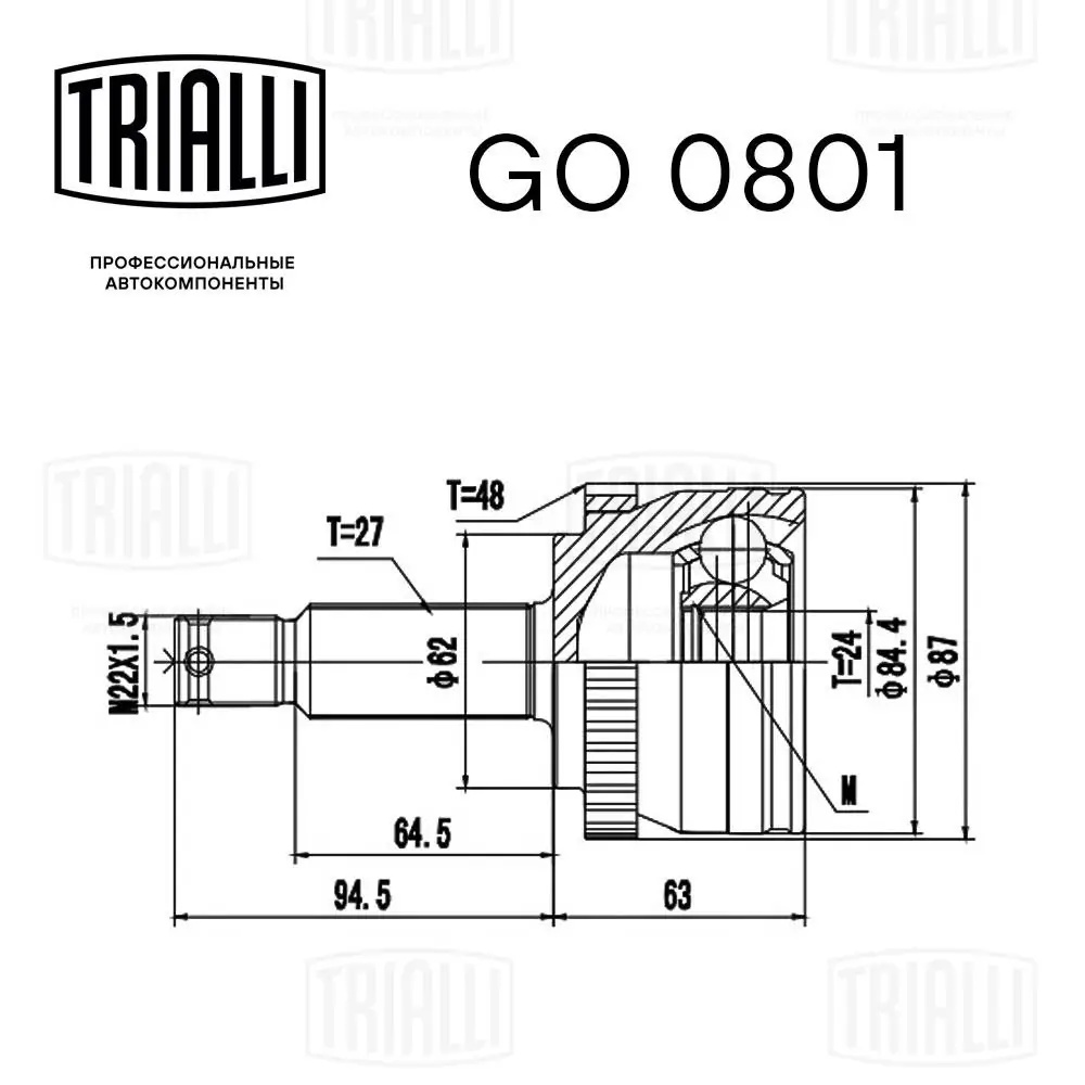 GO 0801 TRIALLI ШРУС наружный Kia Sportage 04-/Hyundai Tucson 04- 2.0/2.7 ABS GO0801