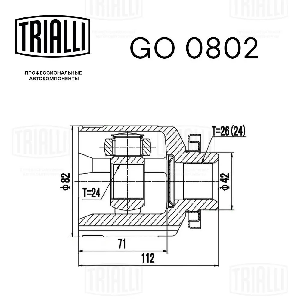 GO 0802 TRIALLI ШРУС Hyundai Tucson (04-)/Kia Sportage II (04-) 2.0i/2.0CRDi MT (внутр. прав.) (