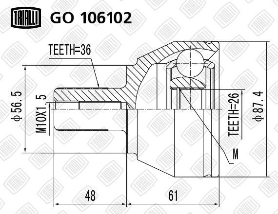 GO 106102 TRIALLI ШРУС Ford Focus II (05-) 1.6 TDCi (наруж.) (26 шлц.) (GO 106102)