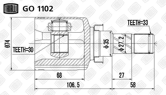 GO 1102 TRIALLI ШРУС Mitsubishi Lancer X (07-) 1.6i/1.8i (внутр.) (GO 1102)
