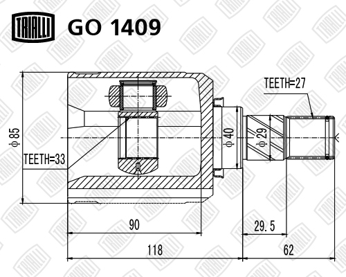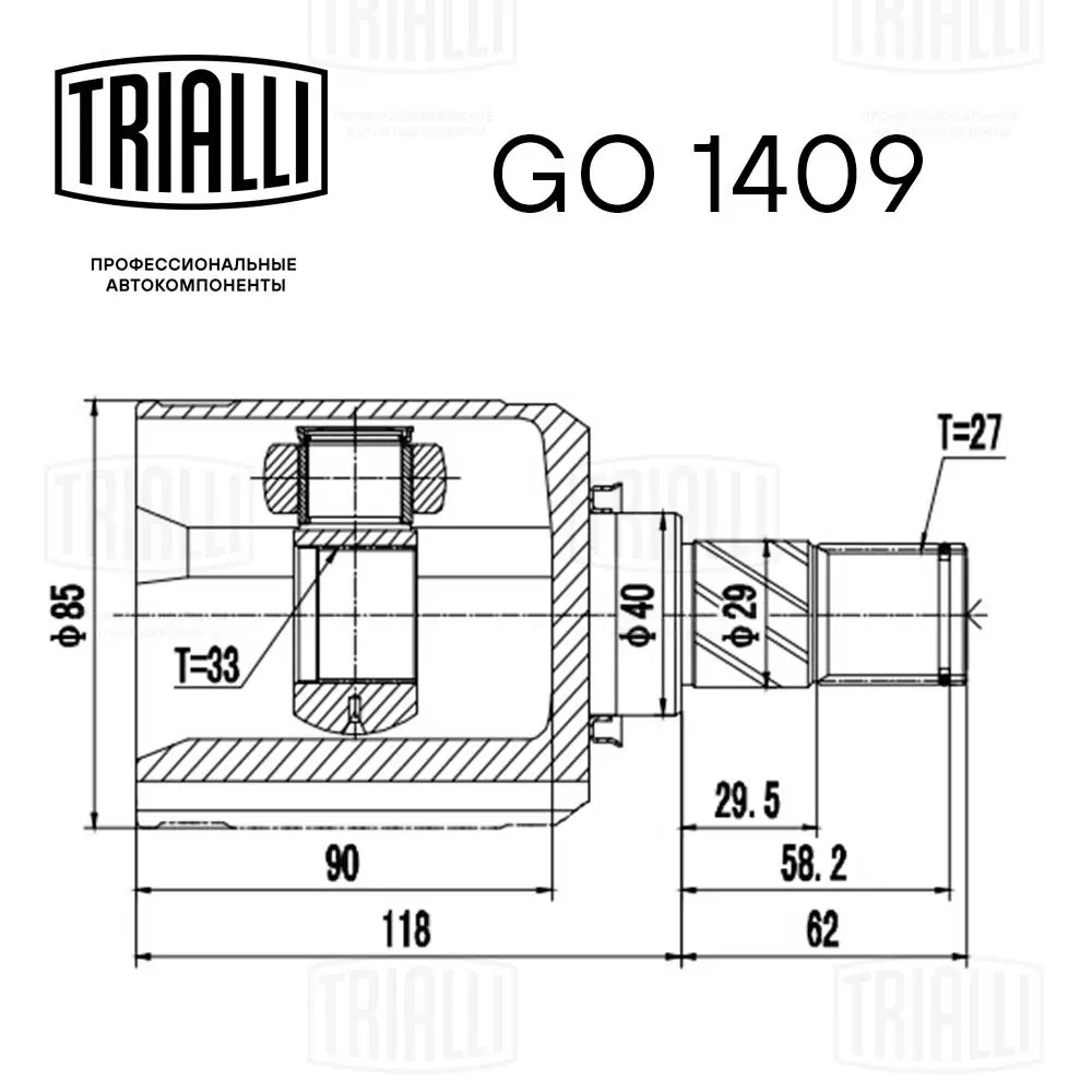 GO 1409 TRIALLI ШРУС Nissan Qashqai (06-) 2.0i (27 шлц.) (внутр. лев.) (GO 1409)