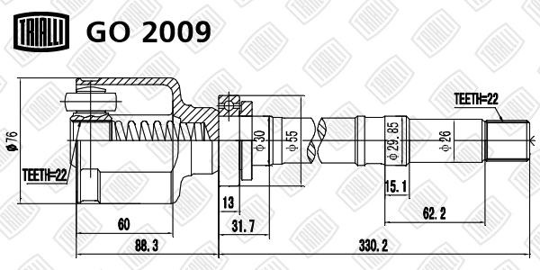 GO 2009 TRIALLI ШРУС Peugeot 206 (98-) 1.4i MT (внутр. прав.) (GO 2009)