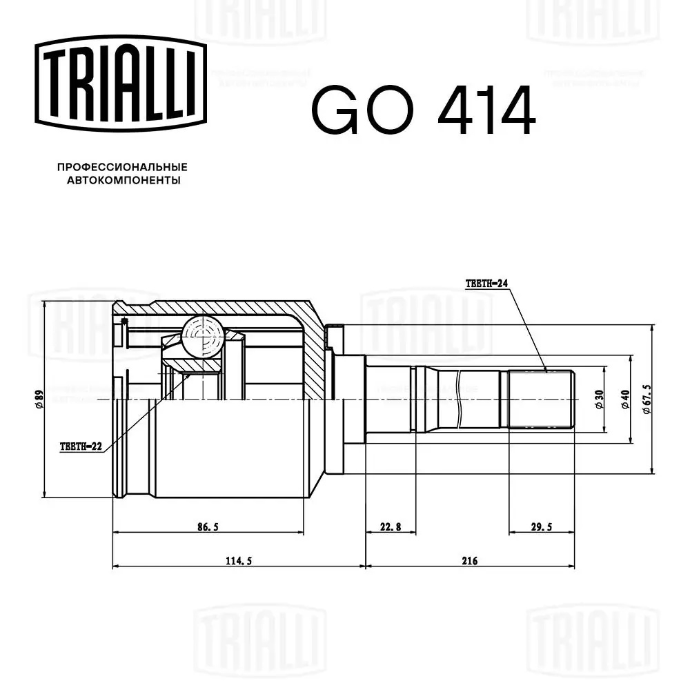 GO 414 TRIALLI ШРУС для а/м ВАЗ 2123 (внутренний, правый, шарик.) "TRIALLI" длинная