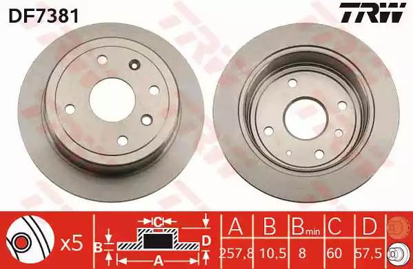 DF7381 TRW Диск тормозной CHEVROLET Lacetti (03-) задний (1шт.) TRW