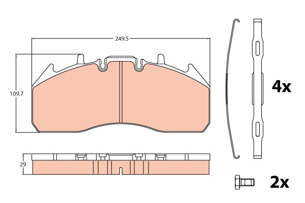 | Наименование | Колодки тормозные VOLVO RENAULT дисковые (249x110x29мм) (4шт.) TRW |