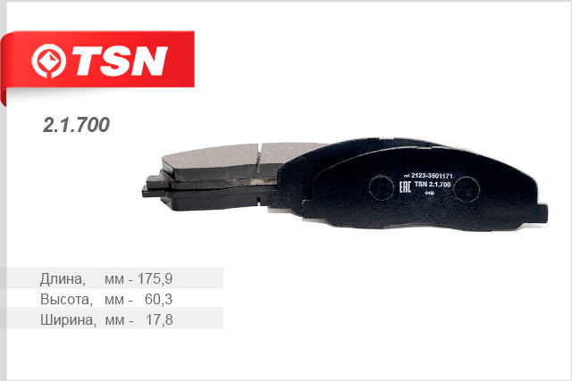 21700 TSN Колодки тормозные дисковые передние для а/м ГАЗель NEXT TSN