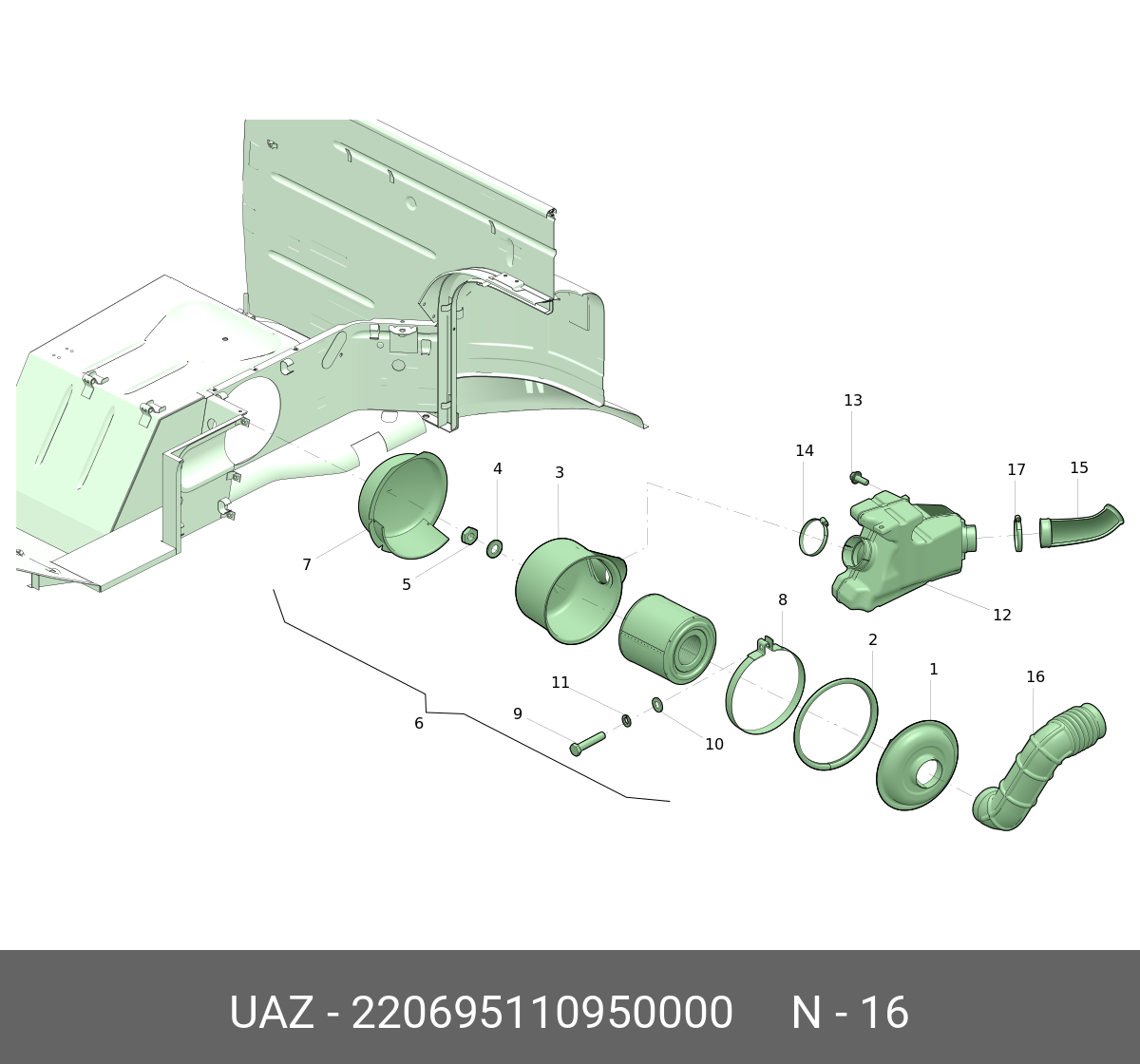 220695110950000 UAZ UAZ Шланг УАЗ-2206,3741 фильтра воздушного компенсирующий (ОАО УАЗ)