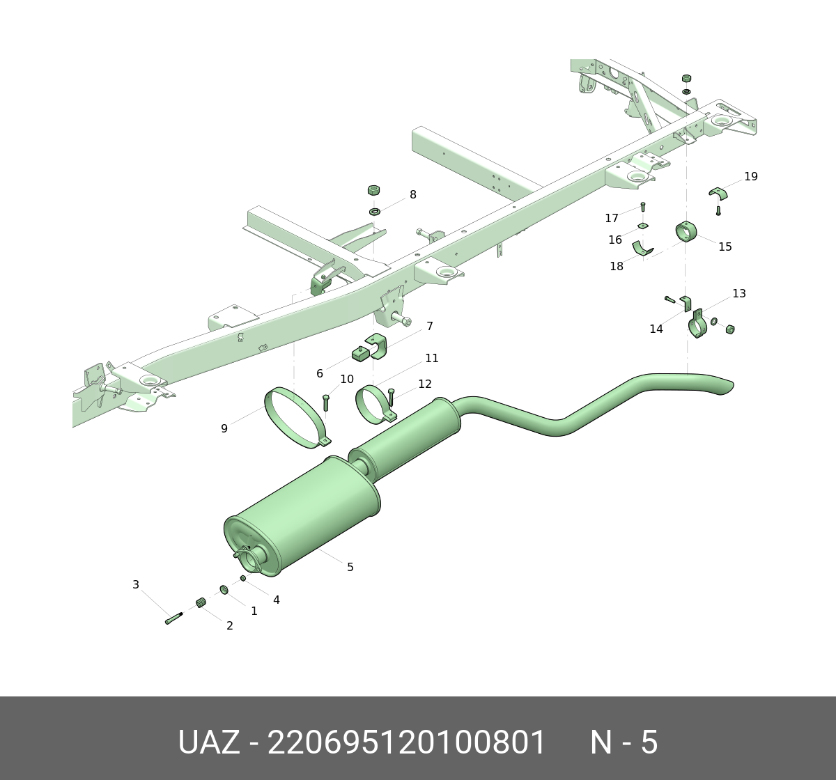 220695120100801 UAZ UAZ Глушитель с резонатором (ДЛЯ А/М УАЗ СГР, 3303, 3909, ДВ. ЗМЗ 409 Баксан) УАЗ